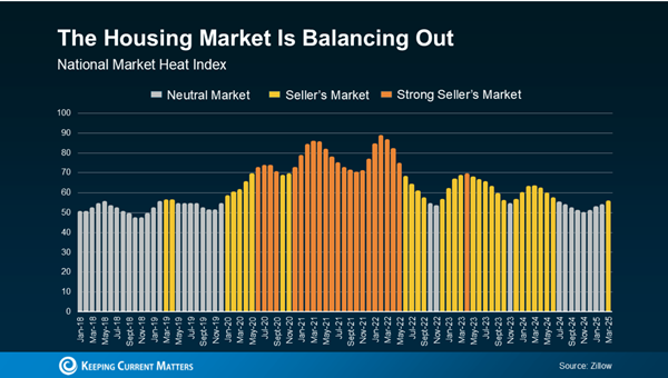 For years, almost every market in the country was a strong seller’s market. That made it tough for buyers – especially first-timers. But now, things are shifting. According to Zillow, the national housing market is balancing out (see graph below):