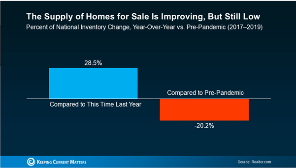 This data will help paint the picture for you. According to Realtor.com, inventory has jumped 28.5% since this time last year, but it’s still below pre-pandemic levels in most markets – and here’s why this is such a sweet spot (see graph below):